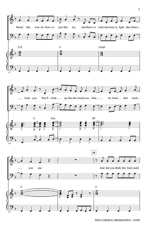 Sing Choral Highlights CD ShowTrax CD In this hilarious take-off off of American Idol with cartoon animals, the koala Buster Moon takes a chance on restoring a once-grand theater by producing a singing competition with a...Regular price $47.99 -