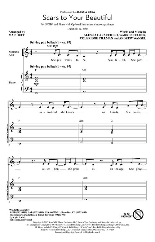 Scars to Your Beautiful Publisher: Hal Leonard Category: Choral Series: Pop Choral Series Format: CD Singers can embrace an empowering message with this uplifting song by Canadian singer/songwriter Alessia Cara that soared up the charts in...Regular price $32.99 -