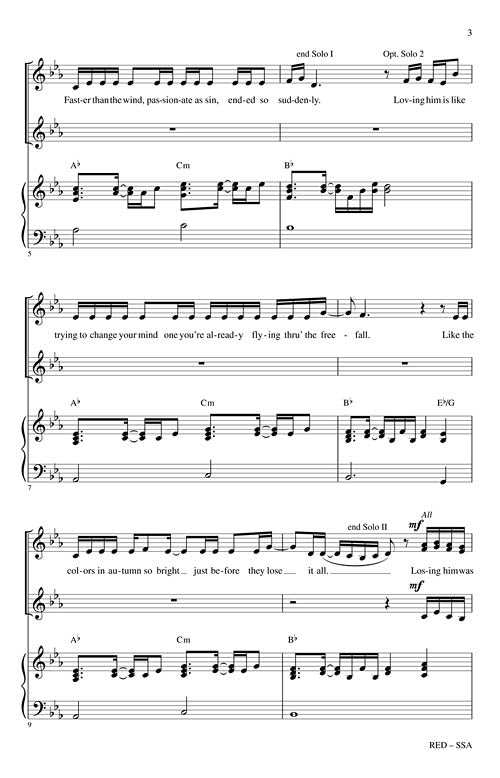 Red CD ShowTrax CD Soaring up both the pop and country charts, Taylor Swift continues to amaze! Great lead vocals and awesome triadic harmonies make this a super choice for SSA pop and show groups who...Regular price $32.99