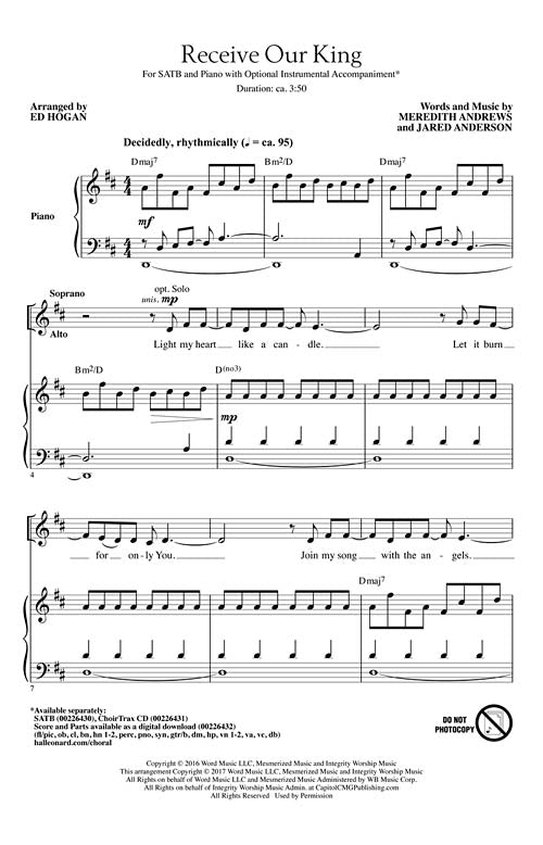 Receive Our King CD ChoirTrax CD Light a candle of truth in your church with this contemporary holiday offering from artist Meredith Andrews. Singable vocal writing endears this number to ensembles of any size, and a...Regular price $32.99 -