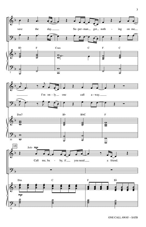 One Call Away CD ShowTrax CD Singer-songwriter Charlie Puth started his career with a YouTube channel and now has several chart hits that showcase his amazing voice and musicianship. This 2016 pop hit has a sweet...Regular price $32.99 -