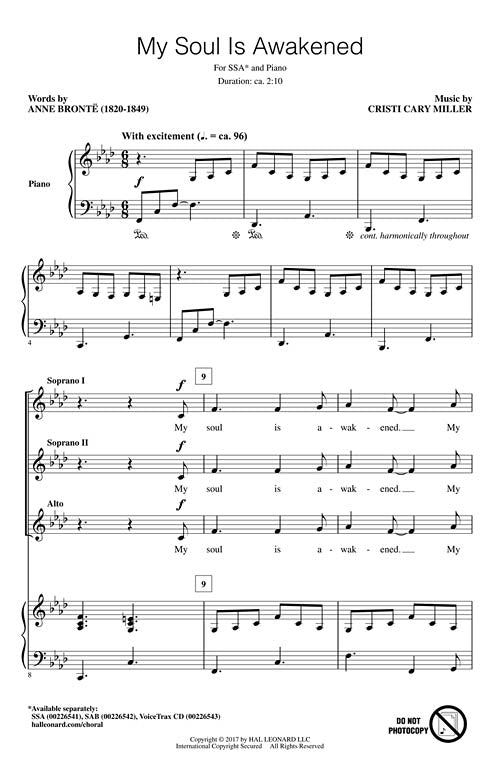 My Soul Is Awakened Discovery Level 2 CD VoiceTrax CD This work bounds away with spirit and energy, embracing the force of nature portrayed in the Anne Brontë poem. This selection will showcase middle and high...Regular price $27.99 -