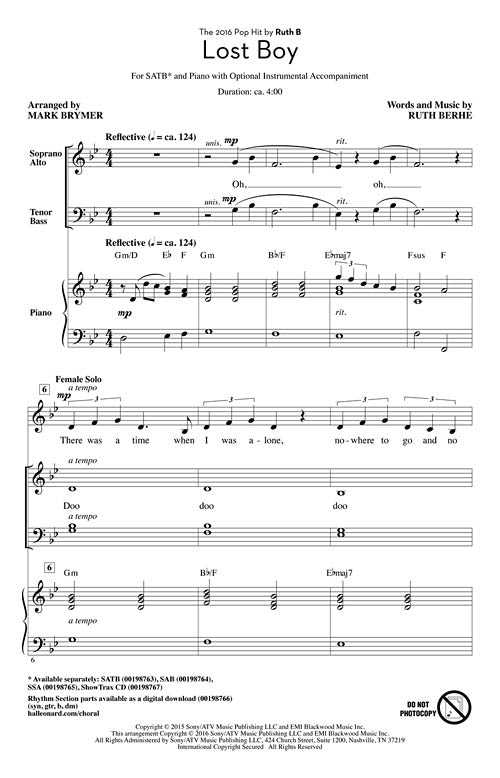 Lost Boy CD ShowTrax CD The debut single by Canadian singer/songwriter Ruth B is a reflection on the story of Peter Pan and Neverland with a simple piano underlay and smooth vocals that capture the bittersweet...Regular price $32.99 -