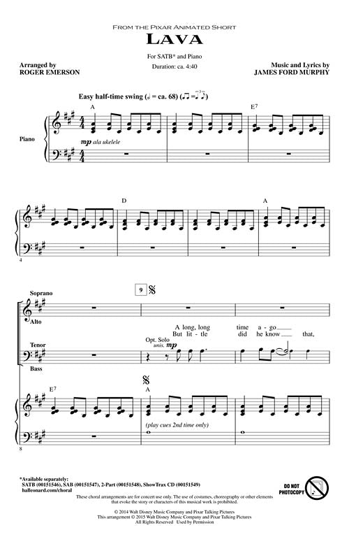 Lava CD ShowTrax CD From the Disney/Pixar short film that accompanied the 2015 hit movie Inside Out, this sweet lava story will have everyone singing along! Perfect for adding ukuleles, this is a sensational encore or...Regular price $32.99
