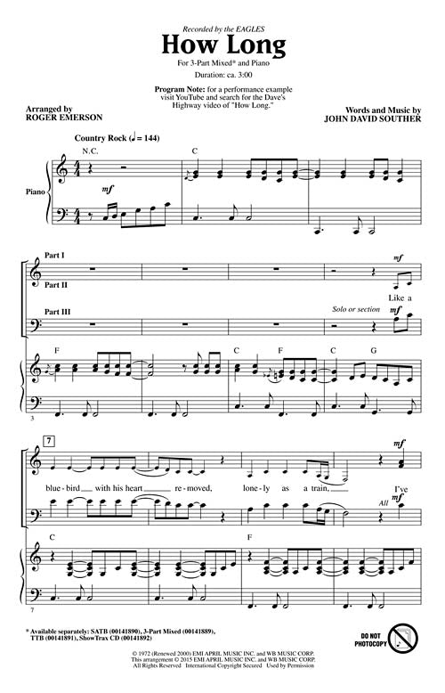 How Long CD ShowTrax CD The Eagles' hit song from 1972 has been remarkably covered by the self-taught young brother/sister group Dave's Highway in a fantastic triadic vocal style that will be great fun to learn...Regular price $32.99 -