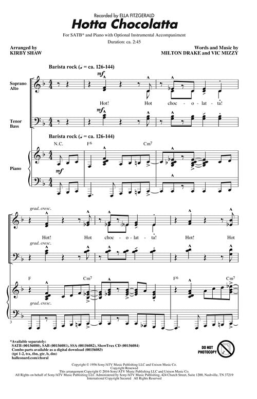 Hotta Chocolatta CD ShowTrax CD Here's a jazz novelty song recorded by Ella Fitzgerald in the '50s that's filled to the brim with sass and style! Perfect for a winter concert, dinner theater fundraiser or anytime...Regular price $32.99 -
