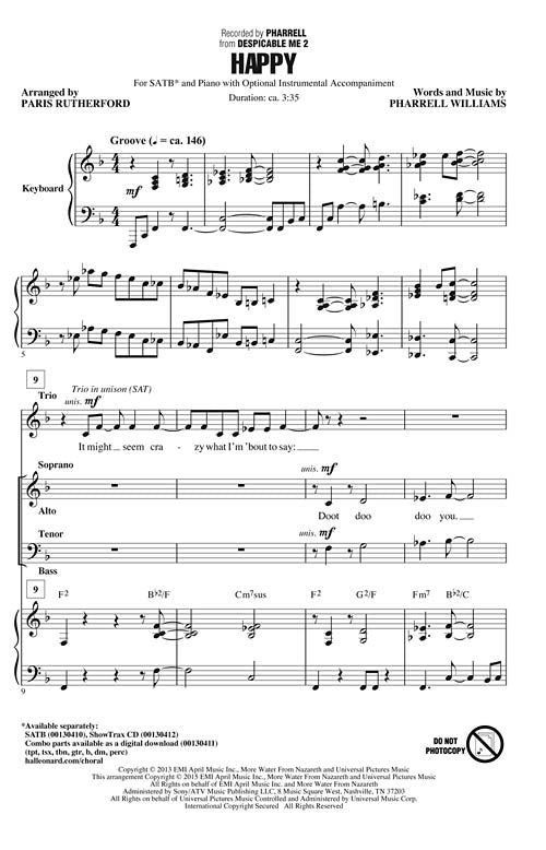 Happy from Despicable Me 2 CD ShowTrax CD The arch-villain Gru is back with his little yellow Minions for another round of mayhem! You won't be able to resist this creative and upbeat song from Despicable...Regular price $32.99 -