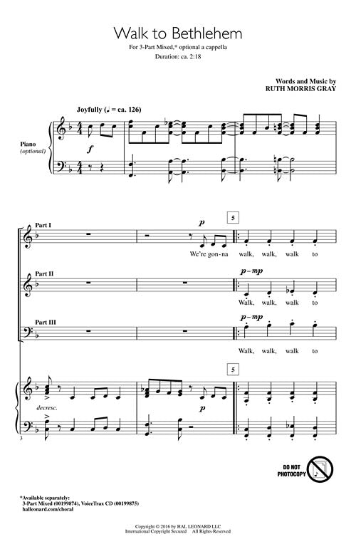 Walk to Bethlehem Discovery Level 2 CD VoiceTrax CD Young mixed choirs will shine with this original Christmas spiritual that is well-crafted for success. Perform with the upbeat gospel piano accompaniment or a cappella for even...Regular price $27.99 -