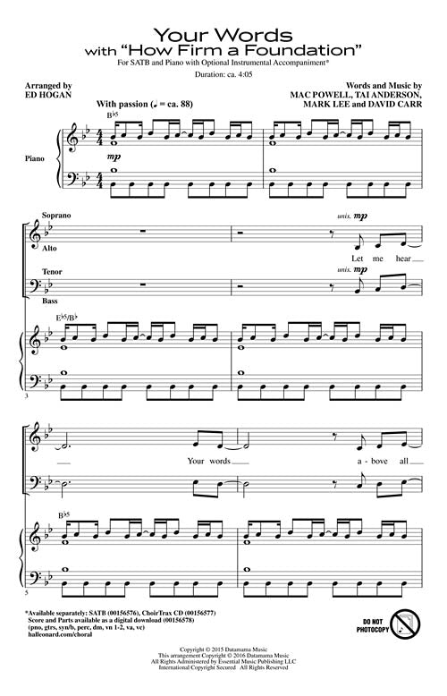 Your Words with How Firm a Foundation CD ChoirTrax CD Uses: General, Praise Team, Reformation, Youth Choir Scripture: Luke 6:47-48; John 6:68; Philippians 2:15-16 From the group Third Day, this worship anthem displays the preeminence of...Regular price $32.99 -