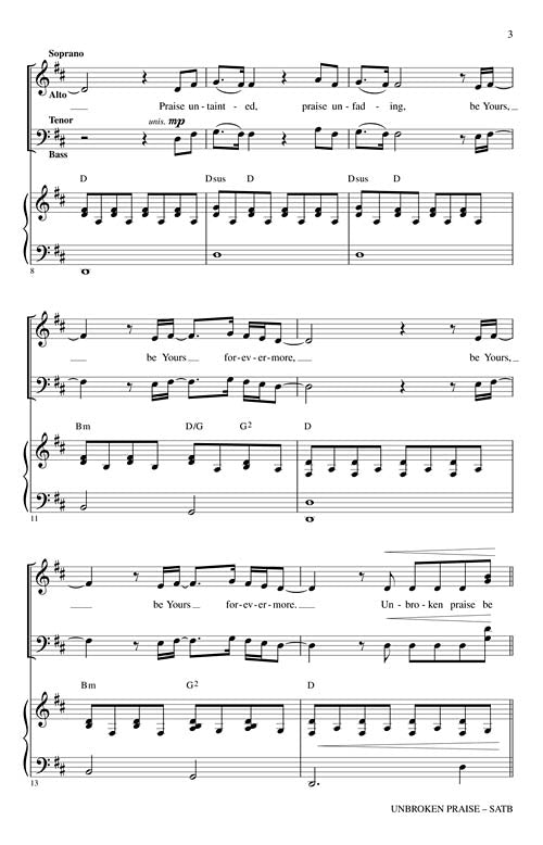 Unbroken Praise CD ChoirTrax CD Uses: General, Praise Team, Youth Choir Scripture: Psalm 86:12; Jude 1:25 The power of praise is front and center in this steady ballad for the contemporary church from Matt Redman. The...Regular price $32.99 -