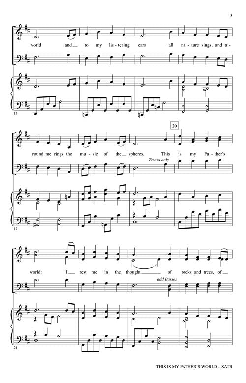 This Is My Father's World Publisher: Brookfield Press Category: Choral Series: Brookfield Choral Series Format: CD Uses: General, Thanksgiving Scripture: Psalm 50:10-12; Psalm 98:8-9; Colossians 1:16 Only the finest of writers can visit the oft-arranged sacred...Regular price $32.99 -