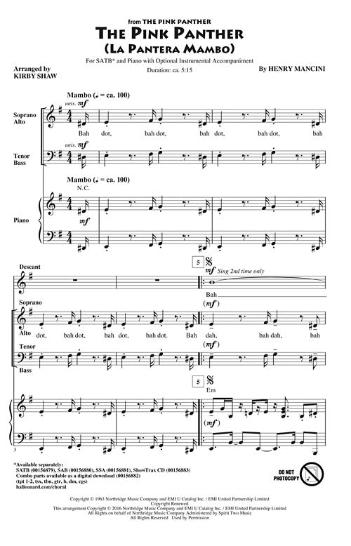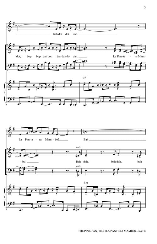 The Pink Panther La Pantera Mambo CD ShowTrax CD What do you get if you combine the Pink Panther theme with a hot Latin beat? La Pantera Mambo! Vocal jazz choirs, pop choirs, all choirs will...Regular price $32.99 -