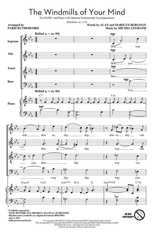 The Windmills of Your Mind CD ShowTrax CD The wistful atmosphere evoked by this classic song from the 1960s offers a wonderful opportunity for beginning and developing jazz/pop choirs to build intonation and style through the...Regular price $32.99 -