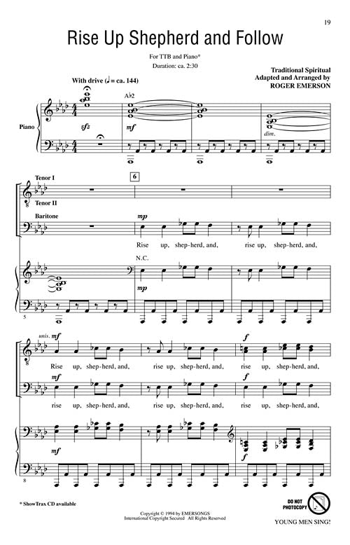 Young Men Sing! Collection CD ShowTrax CD Develop enthusiasm and skill with this value packed collection for young men that will add to your repertoire and be fun to rehearse! Includes these classic arrangements: Rise Up...Regular price $47.99 -