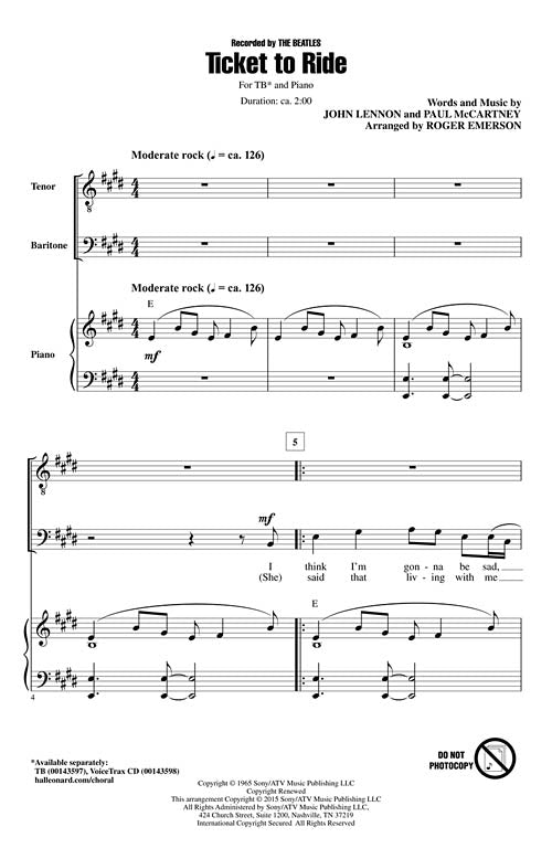 Ticket To Ride Discovery Level 2 CD VoiceTrax CD From the movie Help!, this was one of the incredible series of #1 hits by The Beatles. This arrangement for guys is crafted to be successful for...Regular price $32.99 -
