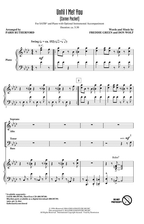Until I Met You (Corner Pocket) CD ShowTrax CD This Freddie Green standard was made famous by the iconic vocal group the Manhattan Transfer. You will love to showcase your vocal jazz ensemble and soloists with...Regular price $32.99 -