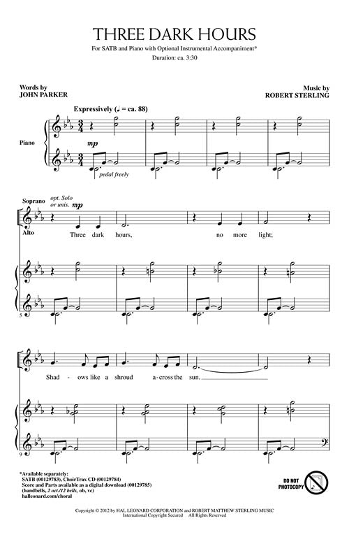 Three Dark Hours Brookfield Easter Choral Choirtrax Cd