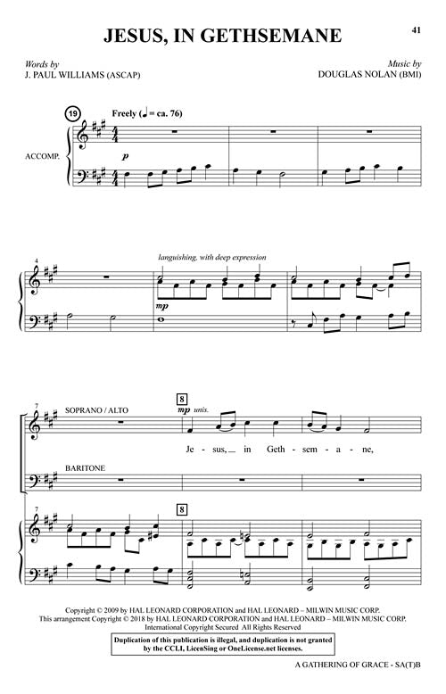 A Gathering of GraceA Service for Holy WeekPublisher: Shawnee PressCategory: ChoralSeries: Shawnee SacredFormat: CDWritten to commemorate the Passion of Christ, this cantata is a moving tribute to His life and ministry. Composed for maximum flexibility and...Regular price $107.99