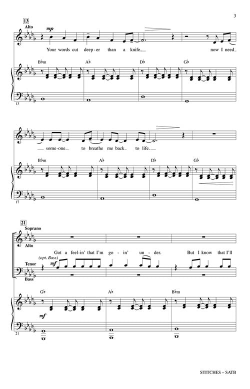 StitchesPublisher: Shawnee PressCategory: ChoralSeries: Shawnee PressFormat: CDRecorded by Shawn Mendes for his debut studio album,Handwritten(2015), Stitches debuted at #11 on Billboard's Hot 100 chart, and has become a YouTube sensation with an acoustic version performed withPitch...Regular price $32.99