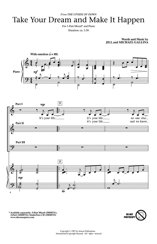 Take Your Dream and Make It HappenPublisher: Shawnee PressCategory: ChoralSeries: Shawnee PressFormat: CDIt's your life, no one else can see you through it. Take your dream and make it happen. Life's the ship and you're the...Regular price $32.99 -