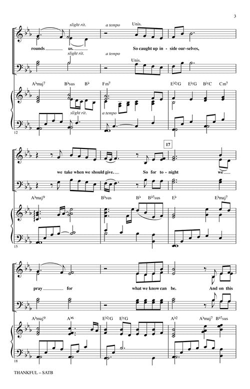 ThankfulPublisher: PraiseSongCategory: ChoralSeries: PraiseSong ChoralFormat: PaperbackFrom the Josh Groban Noel CD comes this tender ballad reminds us to look around at the remember there's so much to be thankful for. Fettke's pairing with Thanks to God...Regular price $35.99