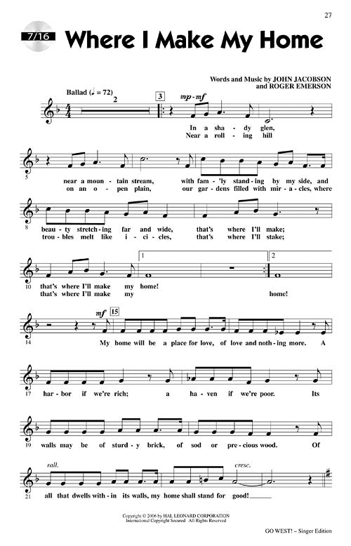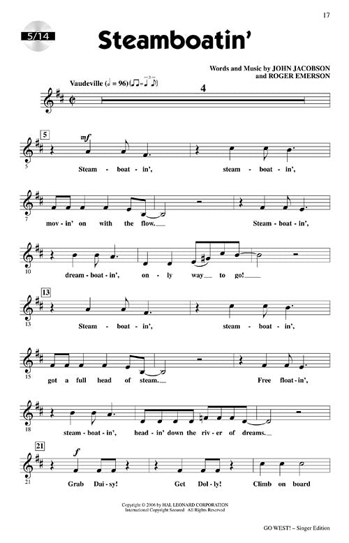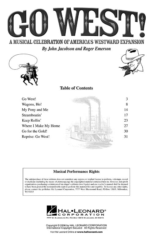 Go West!A Musical Celebration of America's Westward ExpansionPublisher: Hal LeonardCategory: ChoralSeries: ExpressiveArtsFormat: CDThere's gold in them thar hills! Gold has been discovered in the hills of California. Land is being given away to settlers willing to...Regular price $77.99 -