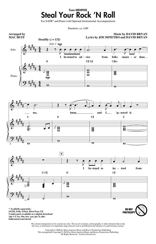 Steal Your Rock 'n Roll(from Memphis)Publisher: Hal LeonardCategory: ChoralSeries: Broadway ChoralFormat: CDWinning the 2010 Tony Award for Best Musical, Memphis explores the frenzied birth of rock & roll and the dramatic stories of the black musicians...Regular price $35.99 -