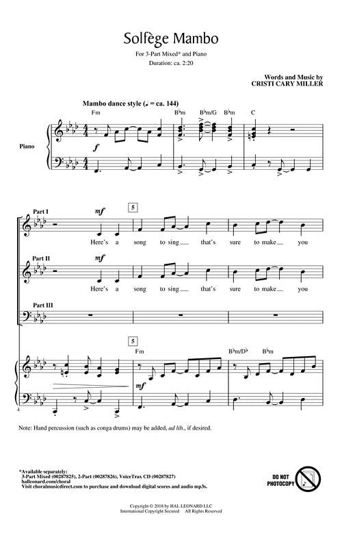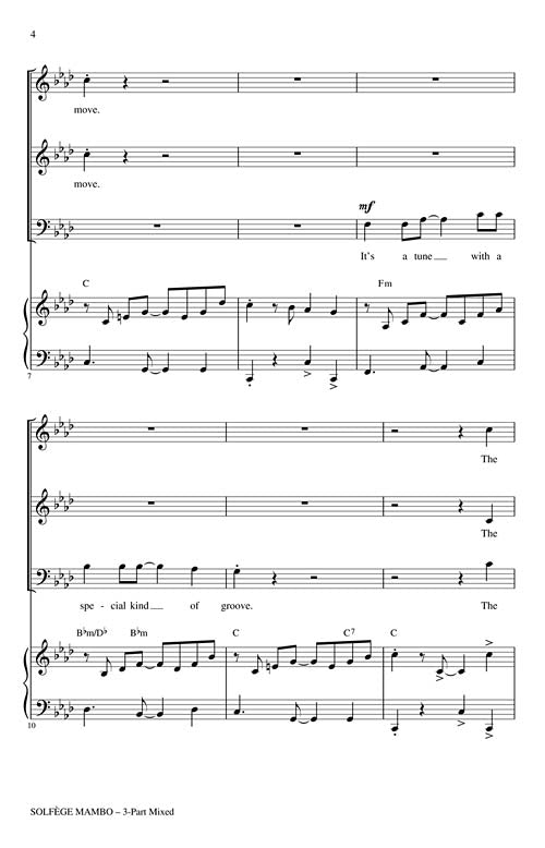 Solfege MamboDiscovery Level 1Publisher: Hal LeonardCategory: ChoralSeries: Discovery ChoralFormat: CDSolfege Mambo draws heavily upon Latin American traditions of syncopation, staccato movement and rhythmic expression. With a text that teaches as well as entertains, this piece practically...Regular price $32.99