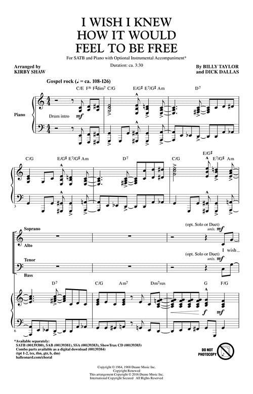 I Wish I Knew How It Would Feel to be FreePublisher: Hal LeonardCategory: ChoralSeries: Contemporary ChoralFormat: CDThis gospel/jazz song written by Billy Taylor and Dick Dallas is best known for the 1967 Nina Simone recording and...Regular price $32.99 -