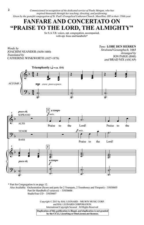 Fanfare and Concertato on Praise to the Lord, the Almighty Studiotrax CD