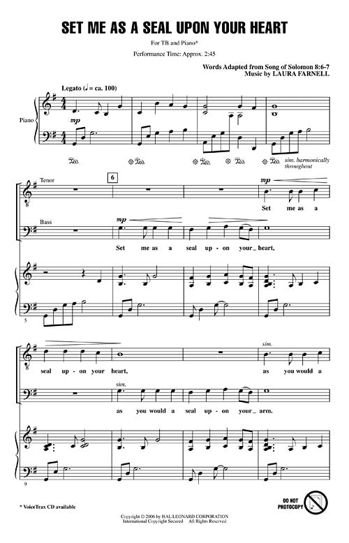 Set Me as a Seal upon Your HeartComposer: Laura FarnellItem# 08551865Sheet Music Condition: New Item# 08551865 Authorized DealerRegular price $17.99 -