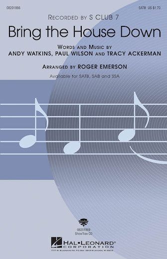 Bring the House DownRecorded by S Club 7Publisher: Hal LeonardCategory: ChoralSeries: Pop Choral SeriesFormat: CDThis driving rock opener from the group S Club 7 is filled with infectious melodies, driving rhythms and a fun vocal stack....Regular price $27.99 -