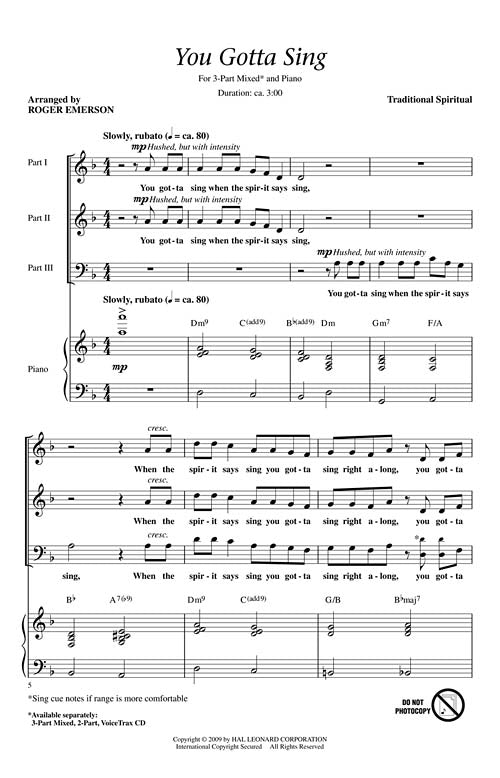 You Gotta Sing Discovery Level 1Arranger: Roger EmersonItem# 08552105Sheet Music Condition: New Item# 08552105 Authorized DealerRegular price $23.99