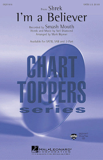 I'm a Believer (from Shrek)ShowTrax CDPublisher: Hal LeonardCategory: ChoralSeries: Pop Choral SeriesFormat: CDSHREK was the monster hit of the summer, and who could forget this over-the-top production number! A #1 hit for the Monkees in 1966...Regular price $35.99 -