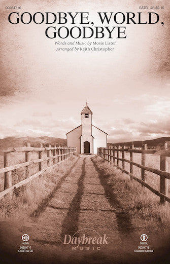 Goodbye, World, GoodbyePublisher: Daybreak MusicCategory: ChoralSeries: Daybreak Choral SeriesFormat: CDA southern gospel evergreen is given new wings in this sensational new treatment. After a free-flowing opening featuring an optional solo, the song surrenders to a happy...Regular price $32.99 -