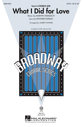 What I Did for Lovefrom A Chorus LinePublisher: Hal LeonardCategory: ChoralSeries: Broadway ChoralFormat: CDA wonderful end-of-the-year or graduation selection, this is every performer's anthem! From the Broadway classic A Chorus Line, this very singable arrangement will...Regular price $35.99 -