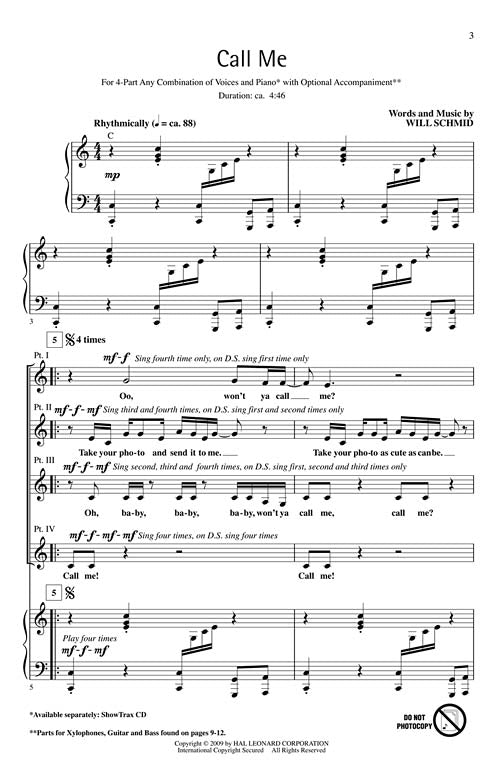 Call Me 4 Part Any Combination Will Schmid