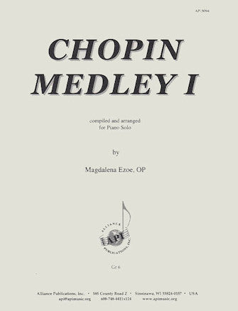 Composer: Magdalena Ezoe Chopin Medley I Publisher: Alliance Music Publications Category: Keyboard & Piano/Vocal/Guitar Series: Alliance Series Format: Softcover Chopin Medley I Inventory # : 08773588 UPC: 649325050941 ISBN: Width: 8" Length: 11" Height: 0.061" Product...Regular price $17.99 -
