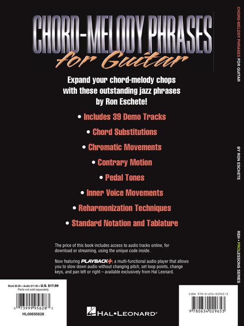 Author: Ron Eschete Chord-Melody Phrases for Guitar Publisher: Hal Leonard Category: Guitar, Bass & Fretted Series: REH Publications Format: Softcover Audio Online Guitar Tab: YES Expand your chord-melody chops with these outstanding jazz phrases by Ron...Regular price $21.99 -