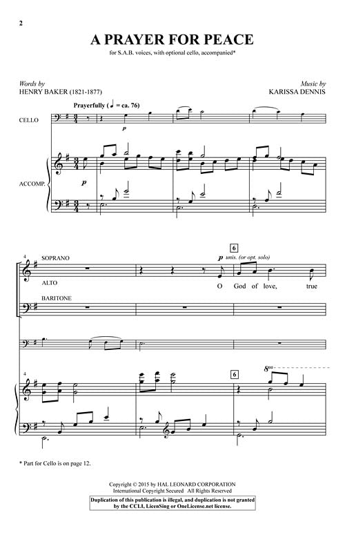 A Prayer For Peace Sab With Cello Karissa Dennis