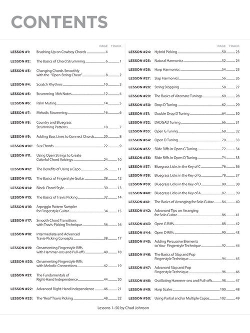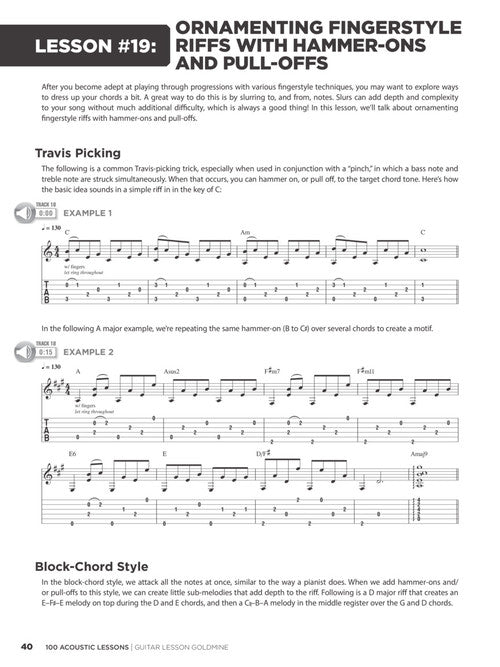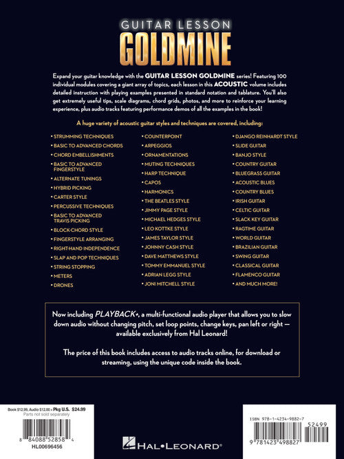 Author: Chad Johnson 100 Acoustic Lessons Guitar Lesson Goldmine Series Publisher: Hal Leonard Category: Guitar, Bass & Fretted Series: Guitar Educational Format: Softcover Audio Online Guitar Tab: YES Expand your guitar knowledge with the Guitar Lesson...Regular price $33.99 -