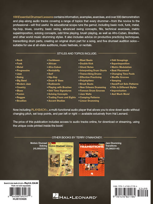 Author: Terry O'Mahoney 100 Essential Drumset Lessons Rock · Jazz · Funk · Metal · Hip-Hop¦· Blues · Country · Reggae · Afro-Cuban · More! Softcover Audio Online 100 Essential Drumset Lessons contains information, examples, exercises,...Regular price $35.99 -