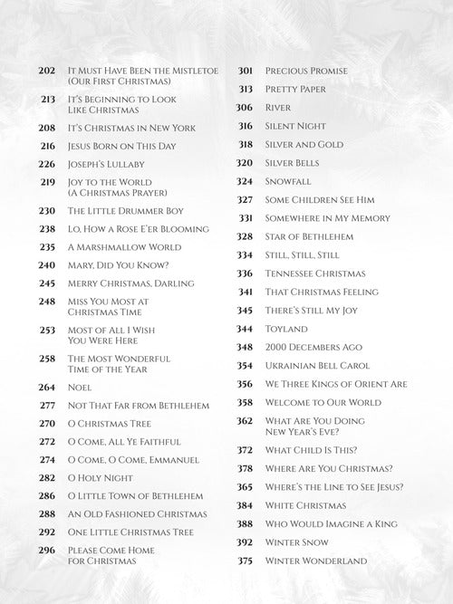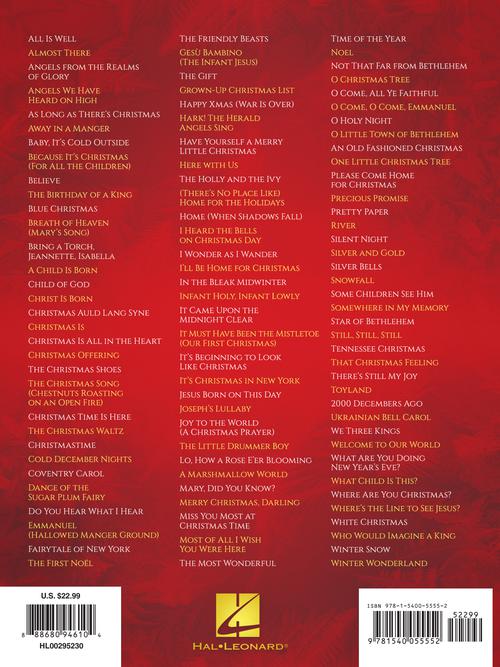 100 Most Beautiful Christmas SongsPublisher: Hal LeonardCategory: Keyboard & Piano/Vocal/GuitarSeries: Piano/Vocal/Guitar SongbookFormat: SoftcoverArrangements for piano, voice and guitar of 100 all-time Christmas favorites, both sacred and secular in nature. Includes: Angels We Have Heard on High...Regular price $39.99