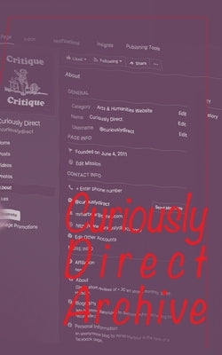 Curiously Direct was an anonymous blog on Facebook of brief reviews of art exhibitions, written by Aaron Harbour, covering five years between June 2011 and 2016. Curiously Direct Archive is an archive of all of the reviews written along with the text from a weekly C.D. newsletter.