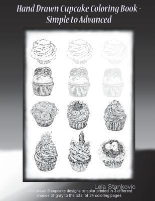 Title: Hand Drawn Cupcake Coloring Book - Simple to Advanced: Hand drawn 8 cupcake designs to color printed in 3 different shades of gray to the total of 24