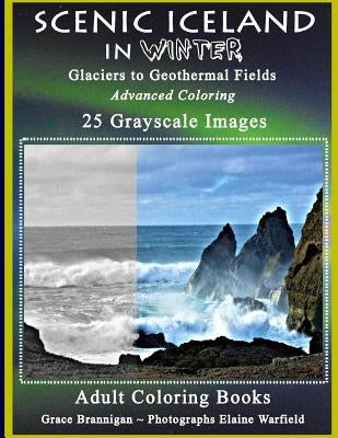 Meditation for the brain -- allow coloring to soothe you. Icelandic Landscapes in Winter This coloring book has 25 Grayscale photographs for Advanced colorists, of scenes from Iceland in Winter. BONUS: included are full color photographs to guide you as you color Glaciers, streams, waterfalls, beaches, ocean, horses, geothermal and lava fields. Stunning images for the advanced colorist and other colorists who enjoy grayscale Note these images are mostly darker winter time colors of white, grays, blues and blacks.Coloring Grayscale images is a fun way to explore color and it makes shading easier to learn when you follow the shading already in the images. Color dark in the darker shaded areas, then medium and light in the lighter areas. The end result is a uniquely rich and rewarding colored image.Coloring has been shown to reduce stress and offer meditative release. Create your own visually appealing art using crayons, colored pencils, felt tip markers, ink pens, watercolor pencils, art pencils, gel pens, glitter pens. There is no limit to your creativity and genius. Still not sure? Check out our website online to see some of our colored images at www.ColoringBooksForAdults.Info.