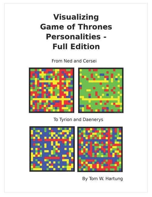 Visualizing Game of Thrones Personalities - Full Edition contains the spiritual portraits of 42 characters from the first seven seasons of the Game of Thrones television series on HBO. This Full Edition contains everything in the Mini-Ebook Edition plus a whole lot more, but looks better on displays bigger than those typically found on mobile devices.Building on the work of Carl Jung, Wassily Kandinsky, and Piet Mondrian, these abstract images use primary colors and rectangular shapes to represent the fundamental psychological preferences of the characters. The resulting abstract images have an open feel for open people, a warm feel for warm people, and a deep feel for imaginative people.Part I contains a full-size version of each of the 42 images organized by House. Accompanying each image is a short description of how the image expresses the personality of the character. These full-size images and the accompanying content are exclusive to this Full Edition and do not appear in the Mini-Ebook Edition.Part II contains pairs of images. Along with each of these pairs is a brief discussion of the character's personality as reflected in their image, and how similarities and differences in their preferences affect their relationship. Some pairs, such as Olenna and Margaery Tyrell, work well together despite their differences. Others, such as Melisandre and Davos Seaworth, have only contempt for one another. Many, such as Jaime and Brienne, and Arya and Sandor, come to learn they have more in common than they originally thought. This Full Edition contains several pairs not in the Mini-Ebook Edition.Part III looks at groups of similar images. Many of the characters are warriors and most of them are coldhearted, but there are some warm people in the brutal social climate in Westeros. Some characters are sweethearts but arguably the most interesting characters have deeper images because they can, unlike the warriors, see more than what is right in front of them. These images make these qualities - and the relative strengths of them - visible for the first time. Part III in this Full Edition includes considerably more content than the Mini-Ebook Edition.Part IV includes insights into patterns and motifs, such as siblings who are dissimilar, and includes a section examining the various ways women express their ambition in the harsh patriarchy of Westeros. Part IV is exclusive to the Full Edition and does not appear in the Mini-Ebook Edition.The images in this book make the invisible, universal preferences present in all people - and the relative strengths of them - visible for the first time.This book is revolutionary in that it is the first one by this author to be focused solely on visualizing personalities.