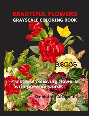 Beautiful Flowers: Grayscale Coloring Book: 46 stress relieving flowers with pos