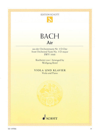 Air in D Major from Orchestral Suite No. 3, BWV 1068 arranged for Viola and Piano
