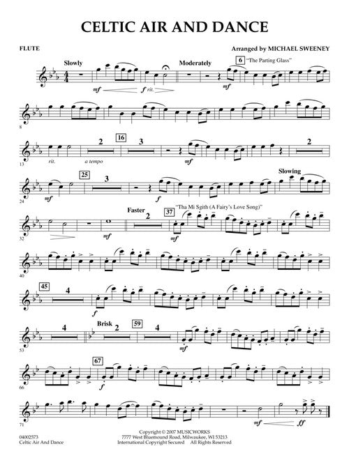 Drawing on the rich and varied tradition of Celtic folk songs, this piece opens with the touching and melodious The Parting Glass. The flutes and percussion take center stage on the dance-like Tha Mi Sgith (A Fairy's Love Song), then finally the entire band gets into the act for the rousing finish. Dur: 3:05 (Includes full performance CD)